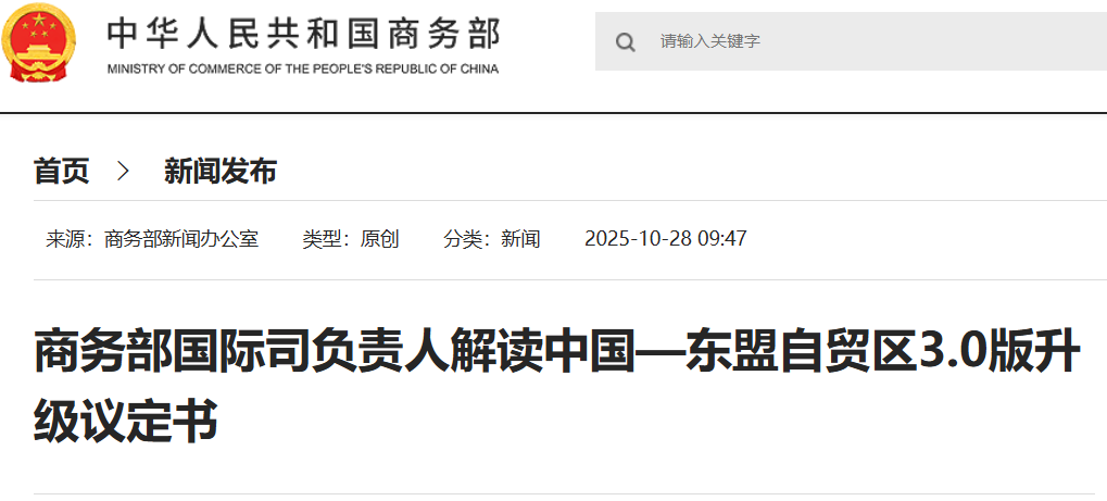 - 10-292025 商務部:中國與東盟首次對綠色經濟、新能源、清潔能源、可持續金融、綠色技能等作出明確定義